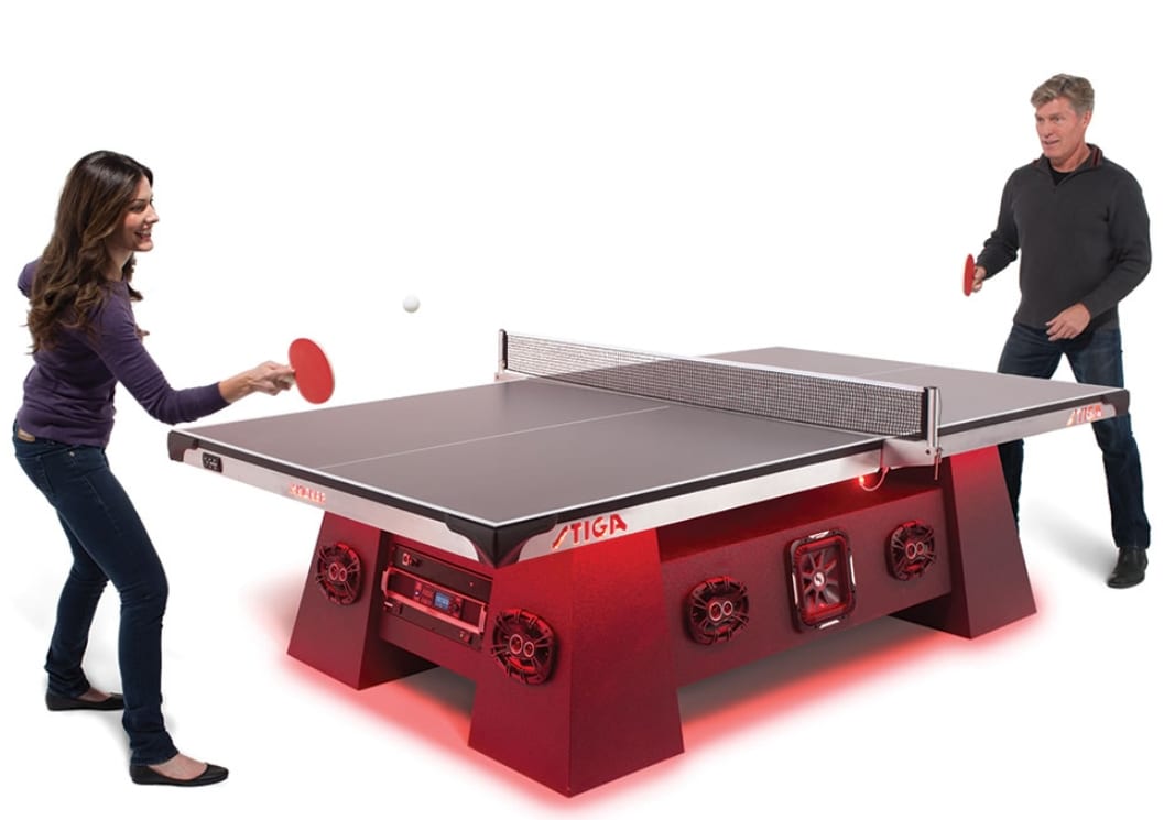 Home » Toys » The World’s Loudest Table Tennis Table Toys The World’s Loudest Table Tennis Table November 21, 2019 95 This is the table tennis table with an integrated 2,800-watt audio system and LED lighting array that impart thrill and excitement to any contest. Handmade in the U.S. by Stiga, the world’s leading innovator in table tennis for over 60 years, the table’s sturdy substructure houses a QSC professional processing amplifier that drives eight three-way 6×9 Kicker speakers and two 12″ solo-baric Kicker subwoofers to provide thumping bass, solid mid-levels, and pealing trebles. Connecting to smartphones and tablets via Bluetooth for music, the table also includes a microphone input and separate volume and track controls that allow ambidextrous karaoke enthusiasts to sing a victory song while delivering a game-winning backhand or an announcer to provide color commentary with each volley. Forty LEDs mounted to the table’s underside illuminate the floor in eight colors of flashing, pulsing, or steady light, synchronizing with the beat of music in real time for dramatic effect. An integrated dampening system isolates the table’s tournament-grade 1″ playing surface, providing predictable, consistent bounce, and is divided with a specially made nylon net secured by 2 1/2″ support aprons made from brushed aircraft aluminum.