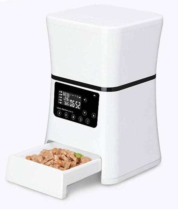 Wet food and meals can be directly put into the food tray. Do not pour the wet food directly into the food barrel.Automatically retractable food tray: the food tray is timed out, and the automatic recovery in 10 minutes can be set in the APP setting recovery time.