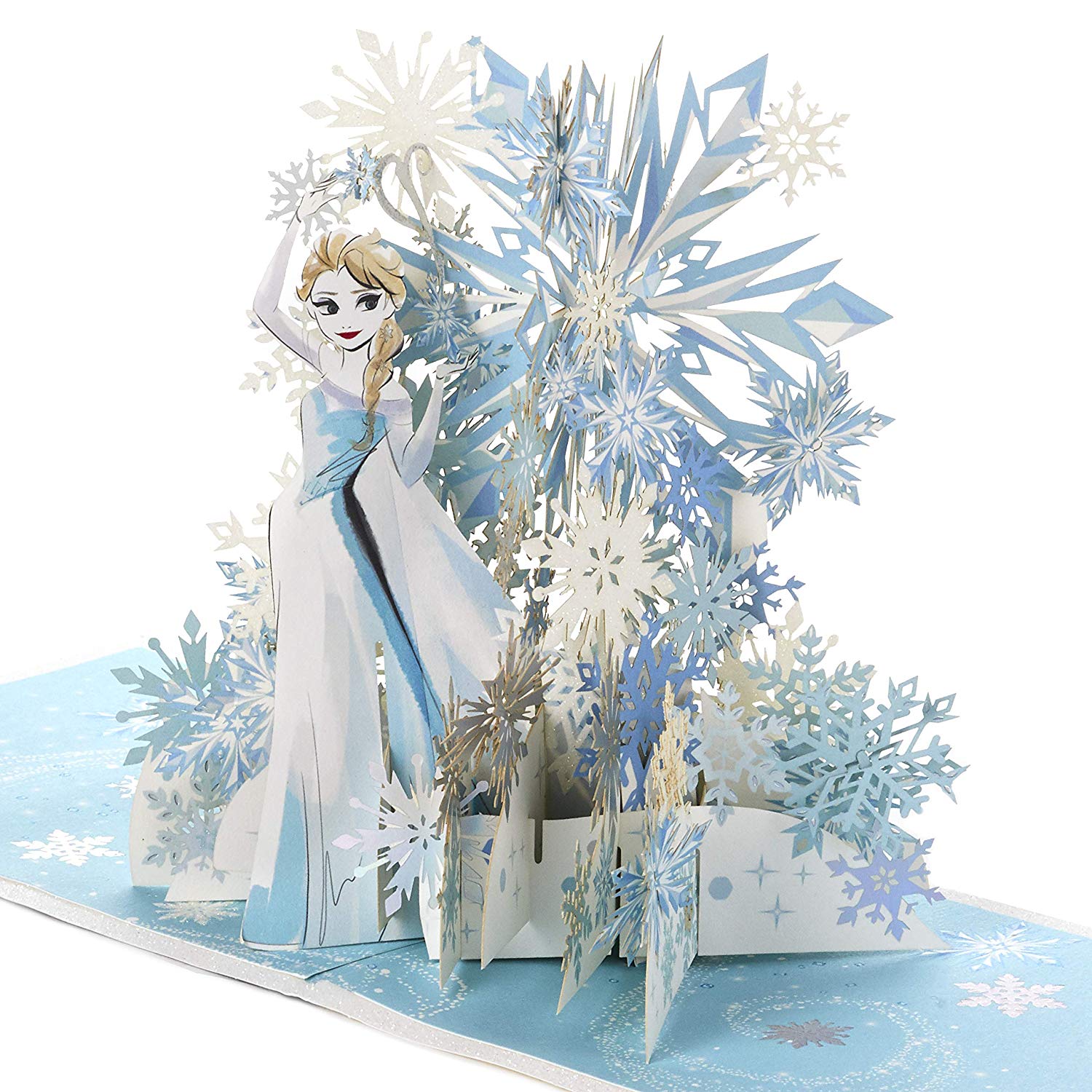 Home » Christmas » Signature Paper Wonder Frozen Pop Up Christmas Card Christmas Signature Paper Wonder Frozen Pop Up Christmas Card December 6, 2019 110 Send wishes for a merry Christmas to a Frozen fan with a pop-up holiday card made especially for them.Cover features a snowflake pattern with a silver foil border. Inside features a 3D pop-up of Elsa amidst a flurry of snowflakes, with the message: “Hope the holiday season warms your heart. “With a pop-up paper craft design and charming sentiment, this card is the perfect way to send good tidings to your son, daughter, niece, nephew, granddaughter, grandson, friend, or anyone else who loves Disney’s Frozen.Christmas card measures 5″ x 7. 2” and comes with a coordinating envelope. Printed on high quality paper stock, Hallmark’s greeting cards and envelopes are made with paper from well-managed forests.