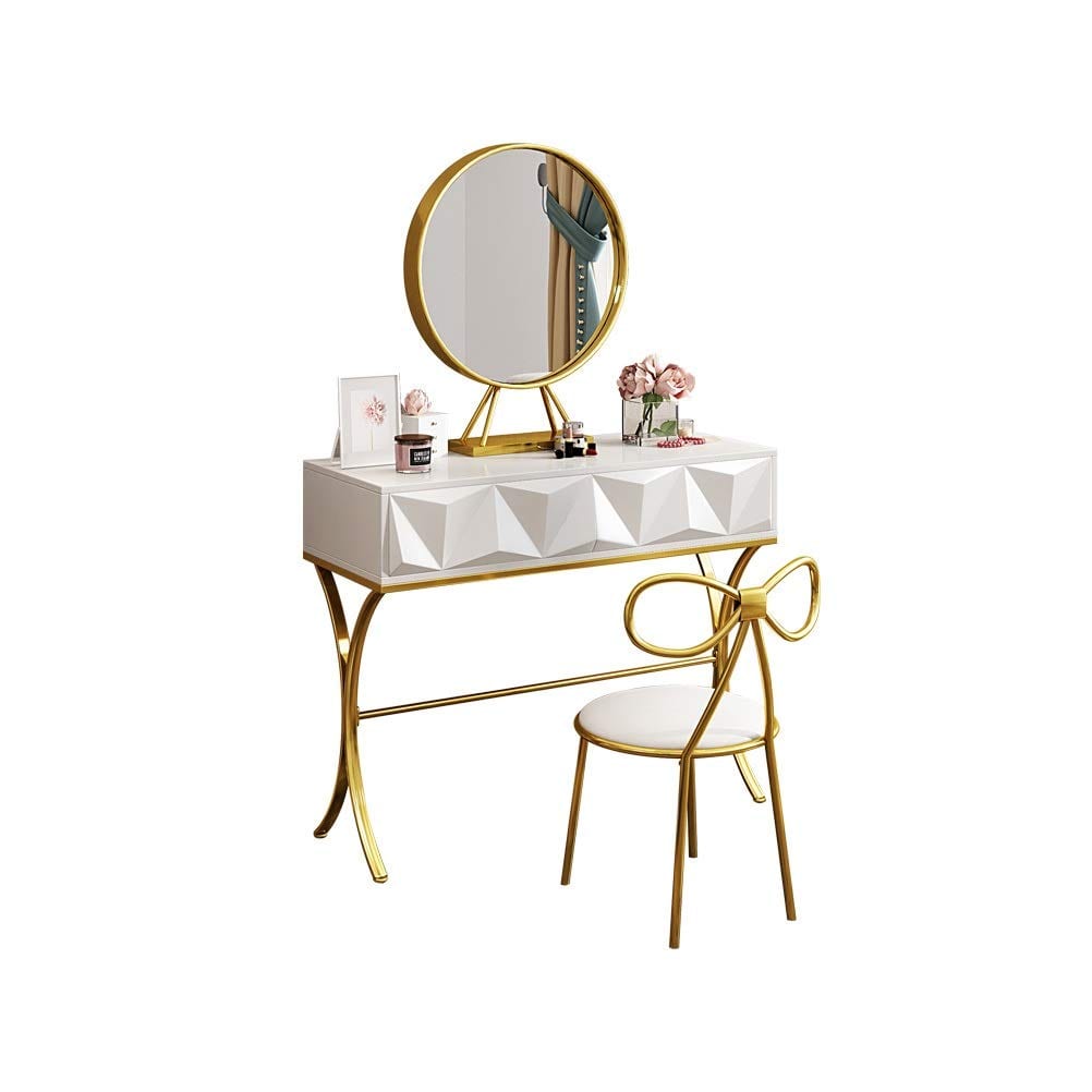 Home » Decor » Makeup Table with Round Mirror and Makeup Organizers Decor Makeup Table with Round Mirror and Makeup Organizers January 30, 2020 115 Every girl wishes to have a glamorous dressing table with all her jewelry and makeup, let it realize your princess dream.The makeup table has a large tabletop perfect for makeup and study, bringing spacious space for make-up, Jewelry and office supplies,Two pull-out drawers for tucking away beautifying tools , cosmetics, writing essentials and more.Some simple assembly is required by attaching the legs to the stool and table, as well as assembling the mirror and attaching that.The modern looks and solid construction means it would last well over time, and surely this charming Vanity will be an ideal gift for your wife, daughter or granddaughter on holidays and other special days(valentine’s day).
