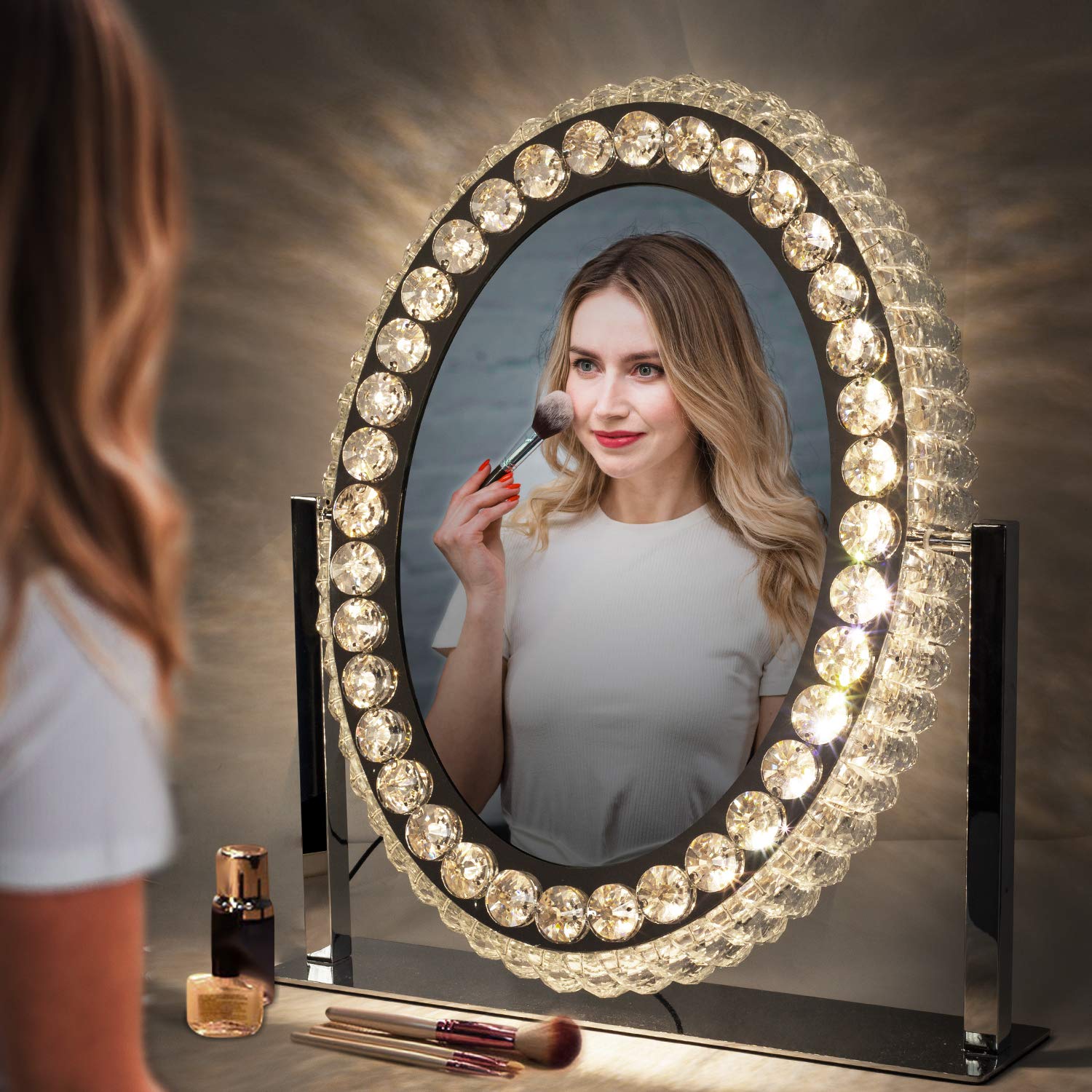 Home » Gadgets » LED Vanity Mirror with Dimmable Lights Gadgets LED Vanity Mirror with Dimmable Lights February 4, 2020 48 Brightly Crystal Light: BEW makeup mirror with light has luxury crystal frame, built-in LED lights up to 200 lumens, this lighted makeup mirror can light up the most dark and poorly lit areas. The vanity mirror with lights is natural and soft, bright but not dazzling, protecting your eyesVirtual Smart Touch: led vanity mirror provides 3 virtual touch buttons on the mirror. Easy to set the vanity mirror lights on/off, colors and the brightness change by gentle touch while doing makeup. Available in 3 color options: warm/natural/daylightHD Mirror Face: L18″ x H16″ hollywood vanity mirror for ideal mirror view. Easily to see how the exactly your makeup will look in various lighting situations, such as daytime, evening, home and office environments, creating suitable makeup for daily, party, business and so on