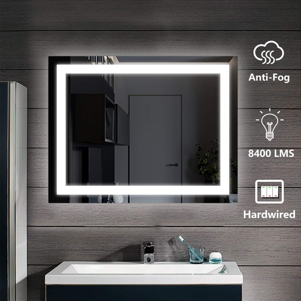 D’amour 28″x36″ Lighted Bathroom Wall Mounted Led Mirror, Backlit Bathroom Vanity Mirror for Home and Hotel Use, High Lumen CRI 90 White Light and Anti-Fog Function, IP44 Waterproof Mirror
