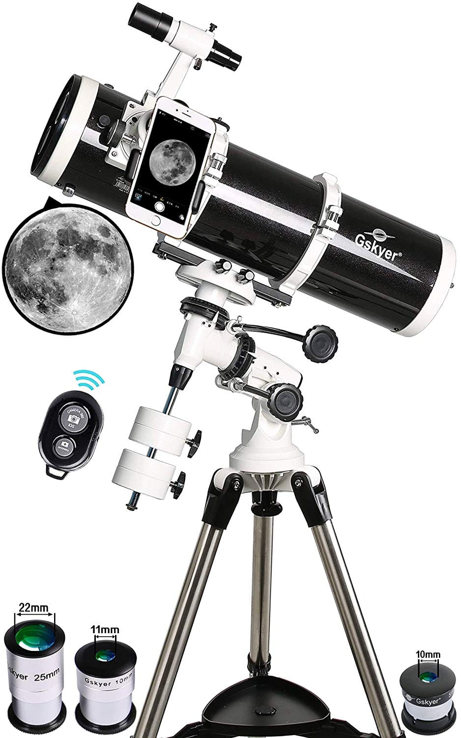 Home » Gadgets » Professional Astronomical Reflector Telescope Gadgets Professional Astronomical Reflector Telescope February 6, 2020 66 This 5.1 inch aperture reflector telescope gathers an ample amount of light for great views of the planets and Moon, as well as brighter galaxies, nebulas, and star clustersShort 24 inch long optical tube design and fast f/5 focal ratio. All-glass optical components with high transmission coatings for enhanced image brightness and clarity and stars.There is no need to download app, the remote can be paired with your device via Bluetooth, compatible with iPhone or Android device. With the bluetooth camera remote, you can take pictures or videos and share them with your family and friends in real time.Come with 3 eyepiece, a 3X Barlow lens, a finderscope, an adjustable tripod, a smartphone adapter, a bluetooth camera remote and so on, contains the accessories you need it allows for any viewing position and on-the-go stargazing.