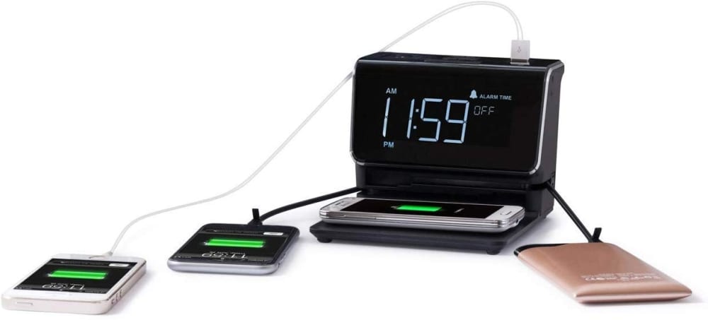 Kube Essentials Power Hub Wireless Charging Alarm Clock Charge Devices with Built in Qi Charger and Cables