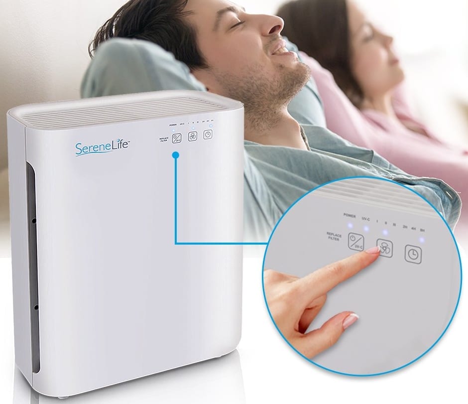 Home » Gadgets » White Air Purifying w/UV-C Sanitizer Gadgets White Air Purifying w/UV-C Sanitizer March 17, 2020 42 BREATHE FRESH AIR: The SereneLife Air Purifier provides the whole family with cleaner, healthier, pure and fresh air to breathe. Allergen remover improves indoor environment air quality preventing family members from catching airborne diseasesTRIPLE LAYER PURIFICATION: Features 3 stage air purification – the pre-filter, captures initial dust and allergens; HEPA filter, captures dust, smoke, pollen, other allergens; activated carbon filter, absorbs formaldehyde, benzene, other noxious gasUV-C LIGHT TECHNOLOGY: Equipped w/ UV-C light which works w/ the filters to enhance the elimination of airborne germ. It activates titanium dioxide to decompose remaining odor molecules caused by smoking, cooking, and petsFRONT PANEL CONTROL: The white pro desk air sanitizer front panel touch button control allows you to turn on UV C light, adjust air circulation fan speeds and set timer settings. It also features LED indicator lights above the button controls430+ SQ FT COVERAGE: The quiet ventilation fan allows for extended air flow that covers 430+ square feet room area ensuring maximum protection for kids and adults. Safe for use around children and pets. Perfect for desktop, tabletop, home, office use