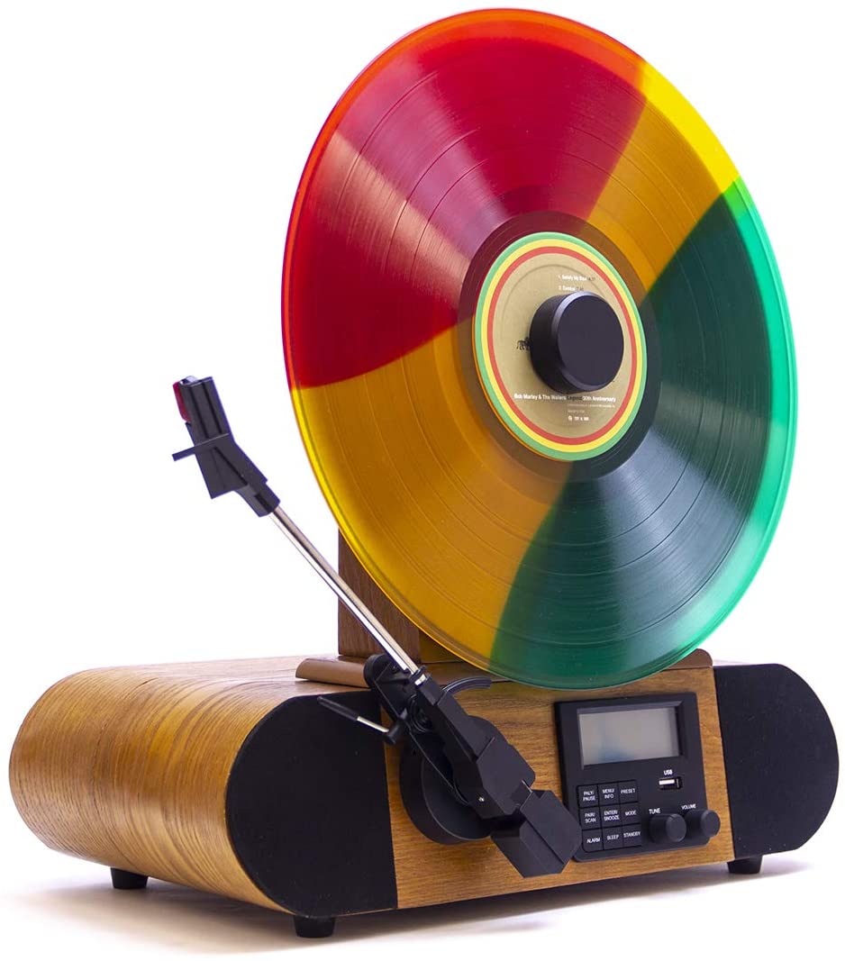Fuse Vert Vertical Vinyl Record Player with Bluetooth, FM Radio, Alarm