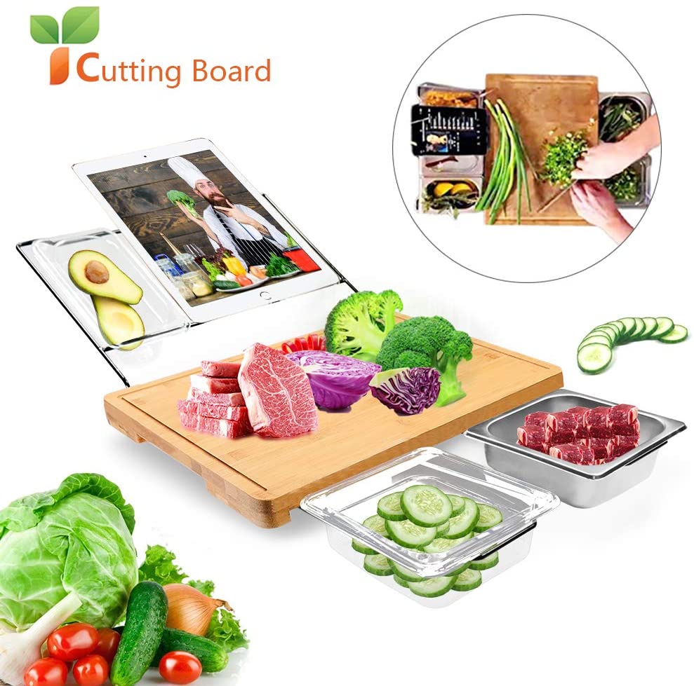 Extensible Bamboo Cutting Board with 5 Containers Tray