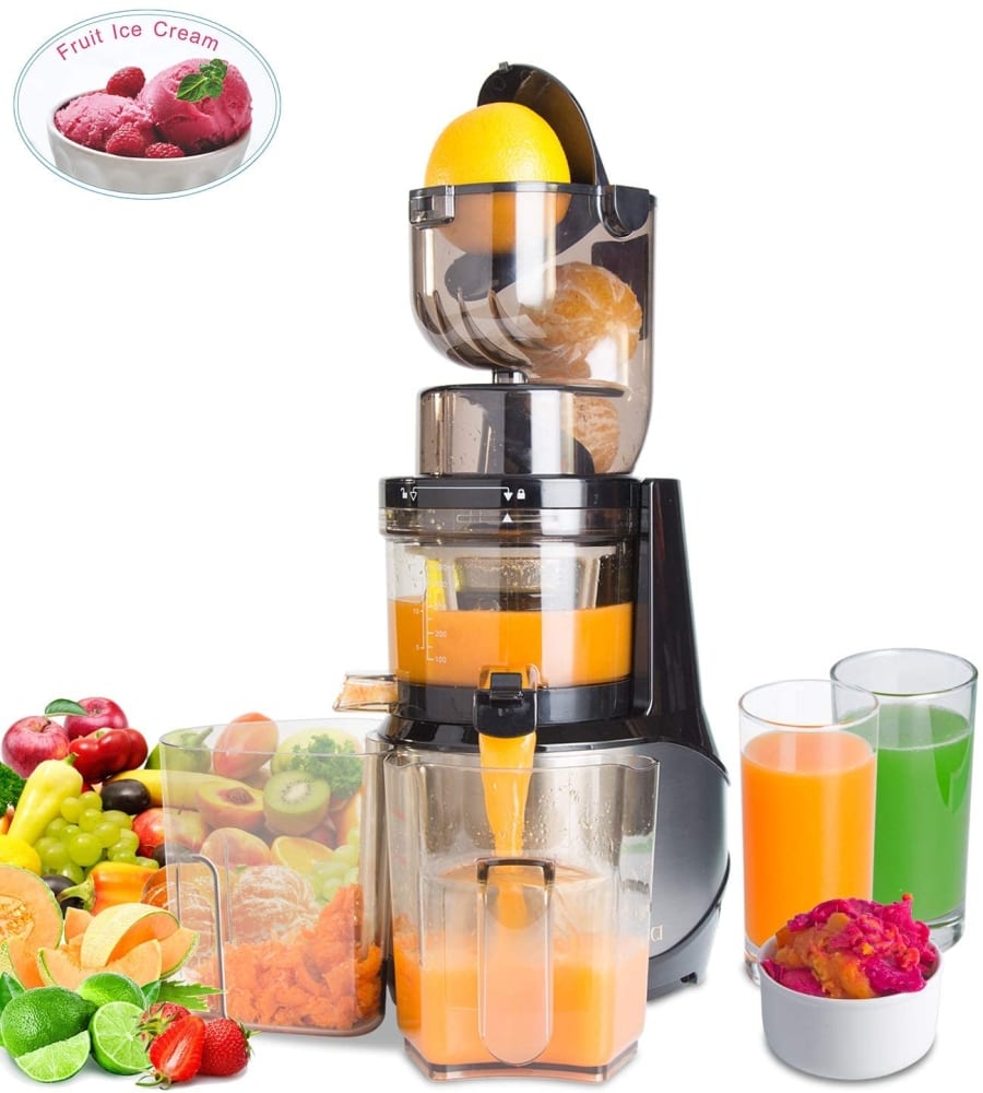 Home » Gadgets » Masticating Juicer Gadgets Masticating Juicer March 26, 2020 67 Powerful and Efficient 300 Watt Motor: This cold press juicer has a 300 Watts commercial quiet AC motor makes juicing more efficient.The slow juicer has Reverse function,noise about 40Db that will not disturb your daily life. The masticating juicer has an improved larger auger,low speed 40 RPMs (the golden ratio of force and time) – Minimal oxidation,Maximally retain nutrients from fruits and vegetables,the juice tastes better.Equipped with a US plug to fit all standard wall sockets.Multifunctional Juicer and Higher Juicing Yield: The low speed juicer contains 3 strainers. Both a fine strainer (for purer juice) and a coarse strainer (for juice with more pulp) are included for your juicing needs. Higher juicing yield, drier pulp, less foam. And an ice cream strainer for making ice cream. Keep the juice outlet cap closed during juicing, it can make mixed juice and reduce oxidation. All working parts are made of high quality TRITAN food grade anti-oxidation materials.3.15″(80mm) Wide Chute: 3.15″ (80mm) wide mouth allows large fruits and vegetables to enter the cold press juicer with little to no cutting required. The cold press slow juicer also has a 1.8″(45mm) opening which is meant for longer food ingredients. The two mouths are designed so the food ingredients can easily enter the juicer, regardless of size. It reduces the time to prepare and clean up for the juicer machine.Easy to Use and Clean:The installation takes only a few simple steps. Taking it apart takes even less time to reduce the cleaning time.Pre-Clean function, no need for cumbersome cleaning, you can firstly close the juice outlet cap, then pour the water into the juicer, press on the working button or reverse button to clean.