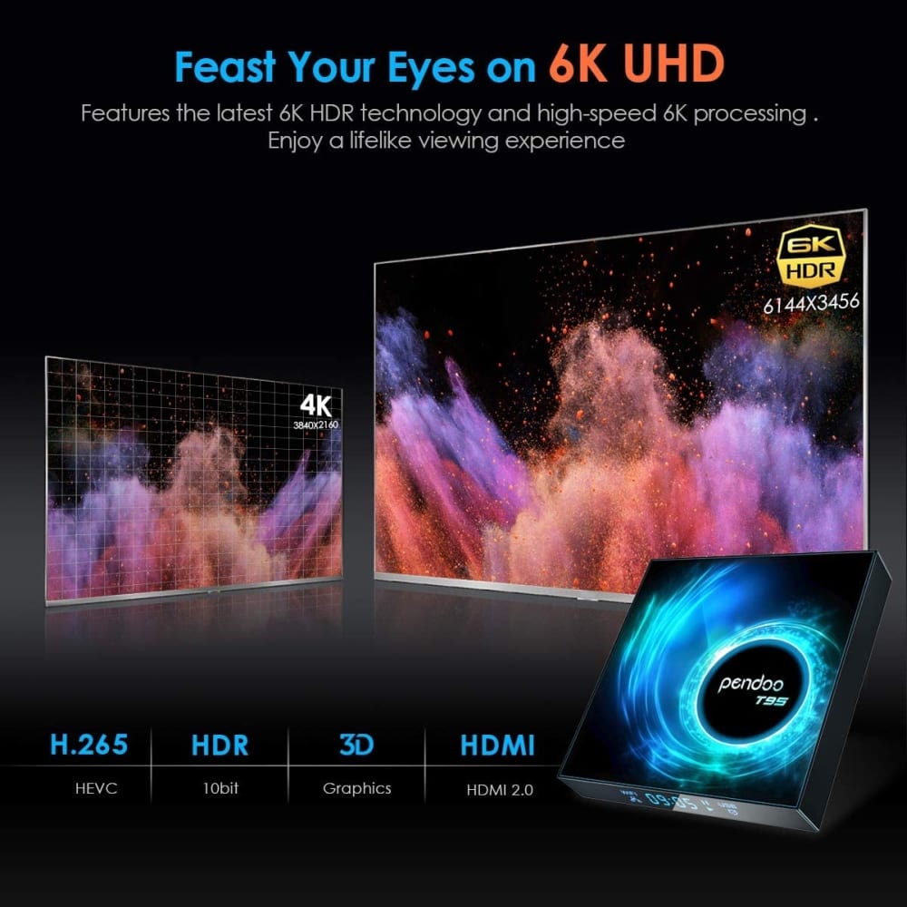 Home » Gadgets » Android 10.0 TV Box, T95 Android TV Box 4GB RAM 32GB ROM Allwinner H616 Quad-core 64bit Gadgets Android 10.0 TV Box, T95 Android TV Box 4GB RAM 32GB ROM Allwinner H616 Quad-core 64bit April 5, 2020 95 ?2020 New Upgrade Android 10.0?T95 Android TV Box features 2020 latest Android 10.0 OS, which makes the android box smarter, faster than android 9.0 and has a better compatibility of software, games and applications; Android 10 TV Box has many convenient and user-friendly operation options and functions which can give a better user experience.?High Performance Processor?The Android TV Box 10.0 powered by the professional Allwinner H616 Quad-Core Corte-A53 CPU, with Mali-G31 MP2 GPU focusing on maximizing processing efficiency. Higher configuration android 10.0 tv box provides ultra-fast running speed and professional image processing ability. Say goodbye to the System freezing and buffering.?High Clarity 6K HDR TV Box?T95 Android TV BOX supports 4K/6K Ultra HD resolution with HDR 10+ and H. 265 Decoding Technology, which significantly improves picture quality, and allows rich colors and deep details as hidden beauty comes alive. Feast your eyes on awe-inspiring visuals with deeper colors, higher contrast, fuller saturation. Enjoy a higher quality games and watching experience.?4GB LPDDR3 & 32GB EMMC?Our android tv box built-in 4GB RAM makes sure the android tv box running stable and smooth to load movies and games without a buffer; Larger capacity of 32GB ROM provides enough space to install unlimited games and movies, never worry about running out of space. You can add Extra Hard Drive, USB device or microSD card to expand storage up to 128G.