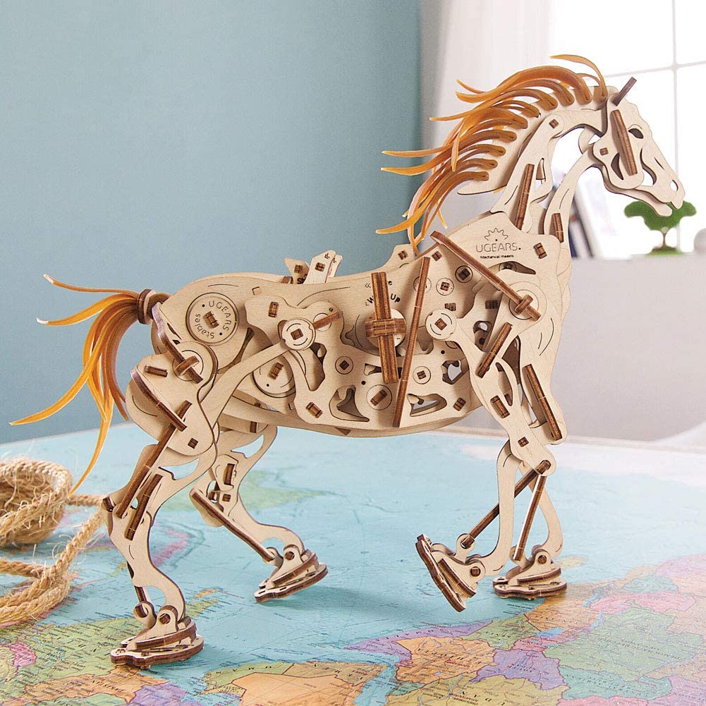 UGears Mechanical Models are self-propelled, mechanical wooden model assemble kits. These designs are inspired by real-life mechanisms. The team believes that building these beautiful working models should be fun. They have dedicated their engineering know-how, meticulous product testing and quality control to a single goal: Ensuring that the models provide an engaging and rewarding experience for the whole family.The Horse Mechanoid is UGears first mechanical walking quadruped. Long before the electricity and steam-powered engines made a significant impact on society’s progress, horses were used as the main transportation and hauling source. From very early on, in Ancient Greece, Japan, and China, inventors inspired by the idea to enhance nature’s most impeccable design with endurance and durability of the mechanisms, attempted to build various walking machines.Combining the ingenuity of Leonardo DaVinci’s inventions and innovative ideas of the modern world, in an attempt to reincarnate those walking machines, UGears created the Horse Mechanoid. Like all UGears models, the mechanical Horse was built to move on its own, powered by a genuine self-propelled mechanism. However, there were challenges along the way of creating the Mechanoid and bringing it to perfection. While solving the problem of stability of moving construction, UGears toy engineers