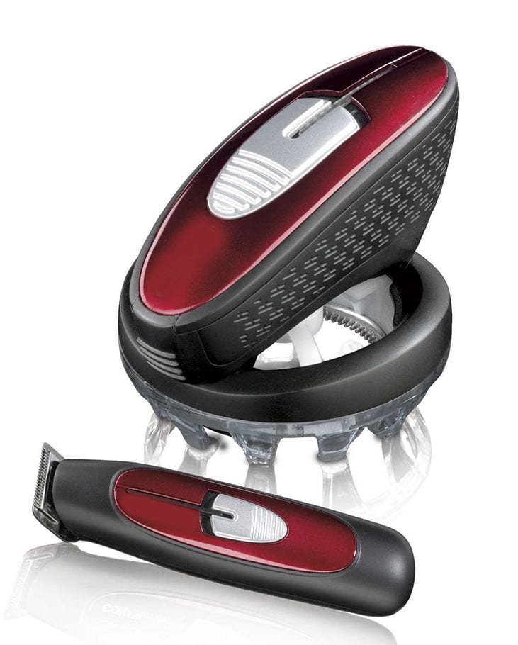 This is the cordless electric hair trimming set that lets you maintain a clean, closely cropped hairstyle at home. As simple as combing your hair, the rotary trimmer’s Japanese steel blades cut evenly in any direction as it follows the contours of your pate. Its ergonomic handle allows precise control and its comb guide easily adjusts to one of four lengths (1/8″, 1/4″, 3/8″, 1/2″) for professional quality results. The included cordless sideburn trimmer has a five-position comb for touching up sideburns and neckline. The hair trimmer’s powerful lithium-ion battery fully charges within 3 hours for 60 minutes of cordless use, or a 30 minute quick charge for 15 minutes. Can also be powered with AC cord.