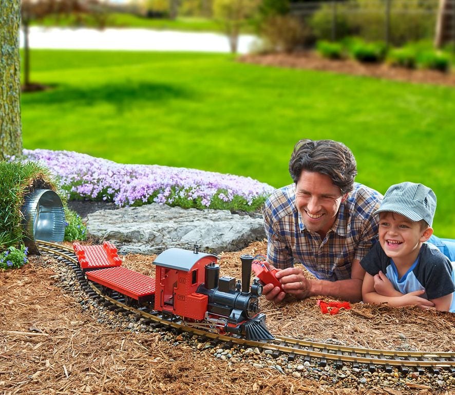 Home » kids » The Outdoor Building Block Electric Train kids The Outdoor Building Block Electric Train June 16, 2020 107 This is the large-scale 30″-long two-car train made from weather-resistant plastic building blocks that can be left outside. The kit includes 30 plastic building blocks that snap together easily to attach to two two-axle flat cars, which are pulled by an electric locomotive around a 51″-diam. circular 12-piece track. The 10″-long flat-cars’ beds are compatible with other plastic block building sets for adding superstructure to each, enabling the imaginative to construct limitless versions of rolling stock. Includes power transformer and speed controller that provides forward and backward movement.