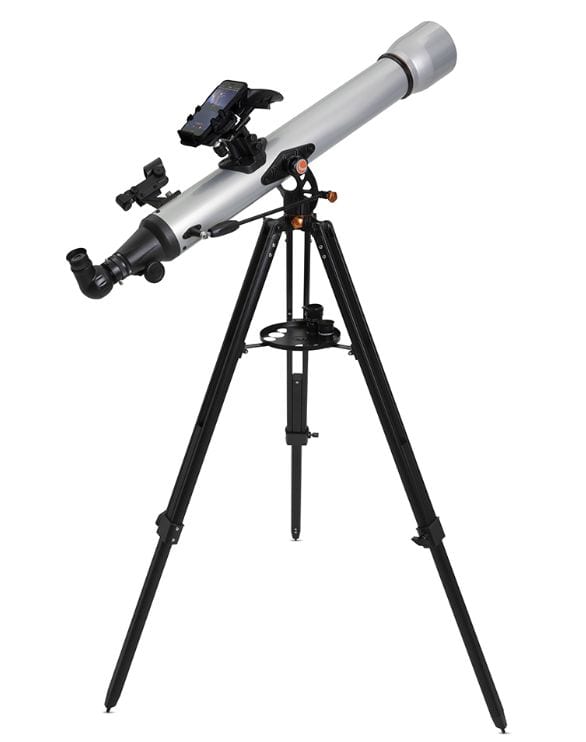 Home » Gadgets » Smartphone Enabled Telescope Gadgets Smartphone Enabled Telescope July 31, 2020 121 Winner of an IHS Markit Innovation Award at the 2020 Consumer Electronics Show, this is the telescope that uses your smartphone to analyze the night sky and guide you through a list of visible celestial objects. A free app interacts with your smartphone’s built-in camera, GPS, and gyroscopes to provide you with a handheld map of the heavens, guiding you where to aim the telescope for quickly locating and viewing nearby stars, planets, and deep sky objects. The telescope provides a view of night objects in precise clarity with an 80 mm aperture and a refractor optical design with a 900 mm focal length that yields a maximum usable magnification of 189X. With 25mm and 10mm eyepieces, 2X Barlow lens, and a red dot finderscope for telescope use without a smartphone.